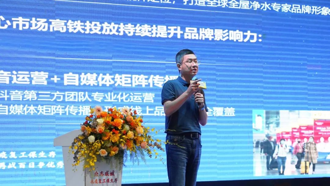 饮水机事业部主任工程师王志军和国内渠道销售部区域经理齐容鹏分别作《饮水机产品平台实践》、《再战百日争优秀》的主题分享。产品平台是开能作为定制化业务所要打造的产品与技术开发以及服务的综合能力;渠道是开能持续提升运营管理能力和效能的关键,两者将共同实现开能自有品牌在全屋净水行业中的领先地位。