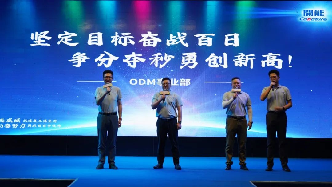 接下来五大业务部门核心成员以及保障支持部门代表,宣誓他们百日奋战的目标和口号。开能健康展示着自己年轻敢拼的姿态,不断突破新高的挑战。