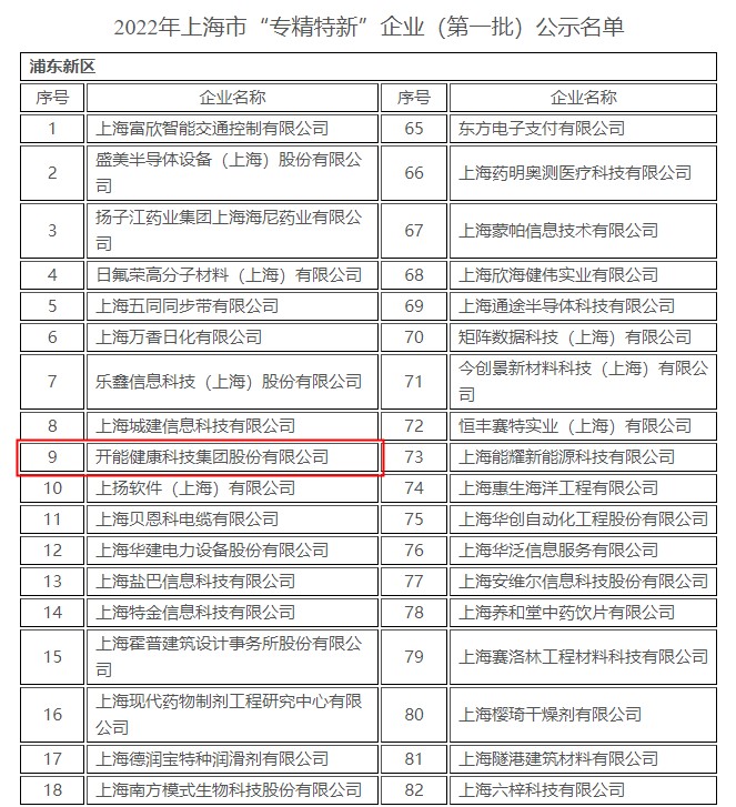 作为水处理行业头部企业,飞艇168官方开奖历史(简称:开能健康)凭借强大的综合实力,通过前瞻性的战略布局和创新创优的价值理念,以“专”立业、以“质”取胜,在之前上海市经信委公示的上海市“专精特新”企业名单中,开能健康成功入选,体现了社会各界对开能健康在自主创新、科研应用、市场拓展和行业领先性等方面的高度肯定。