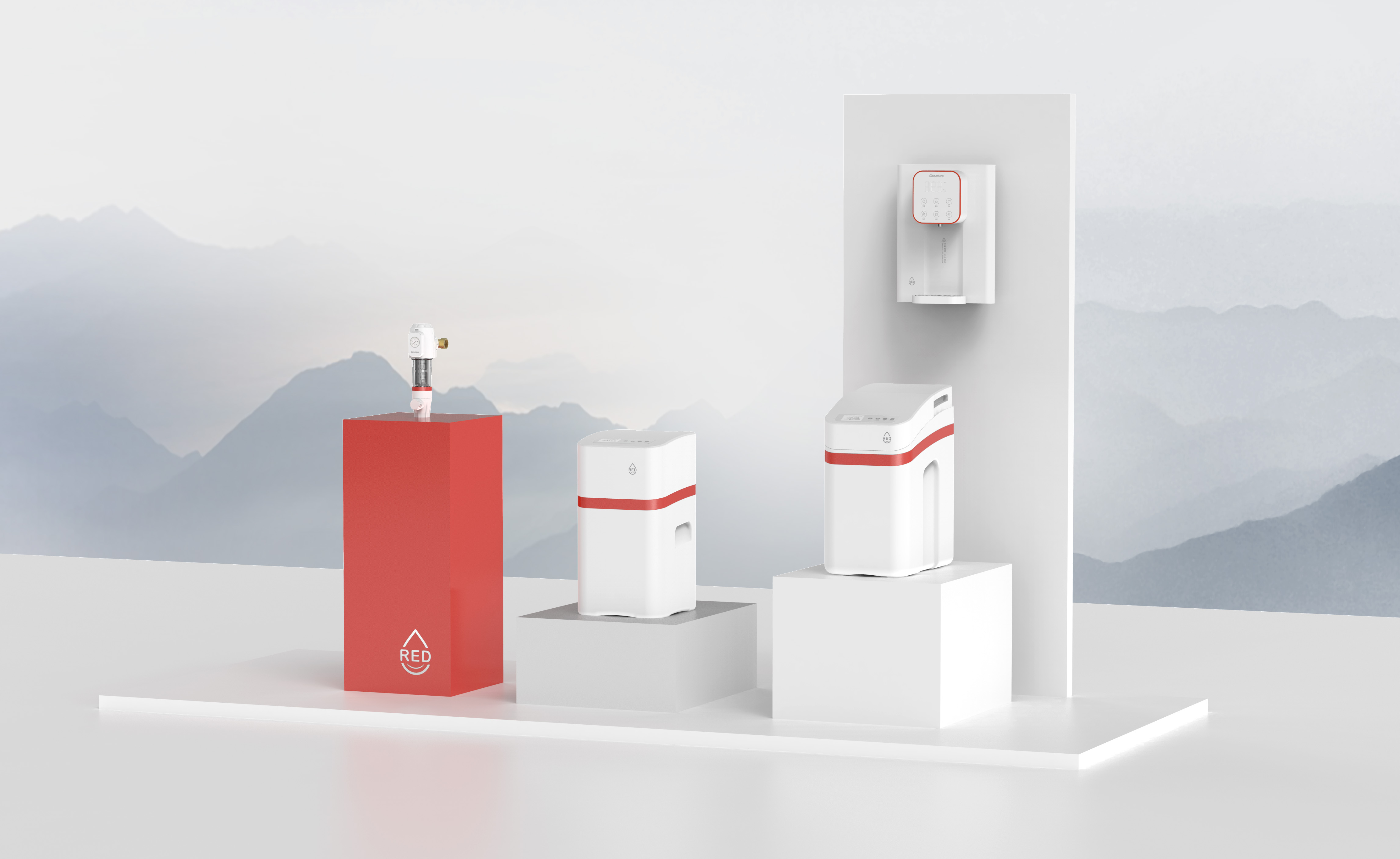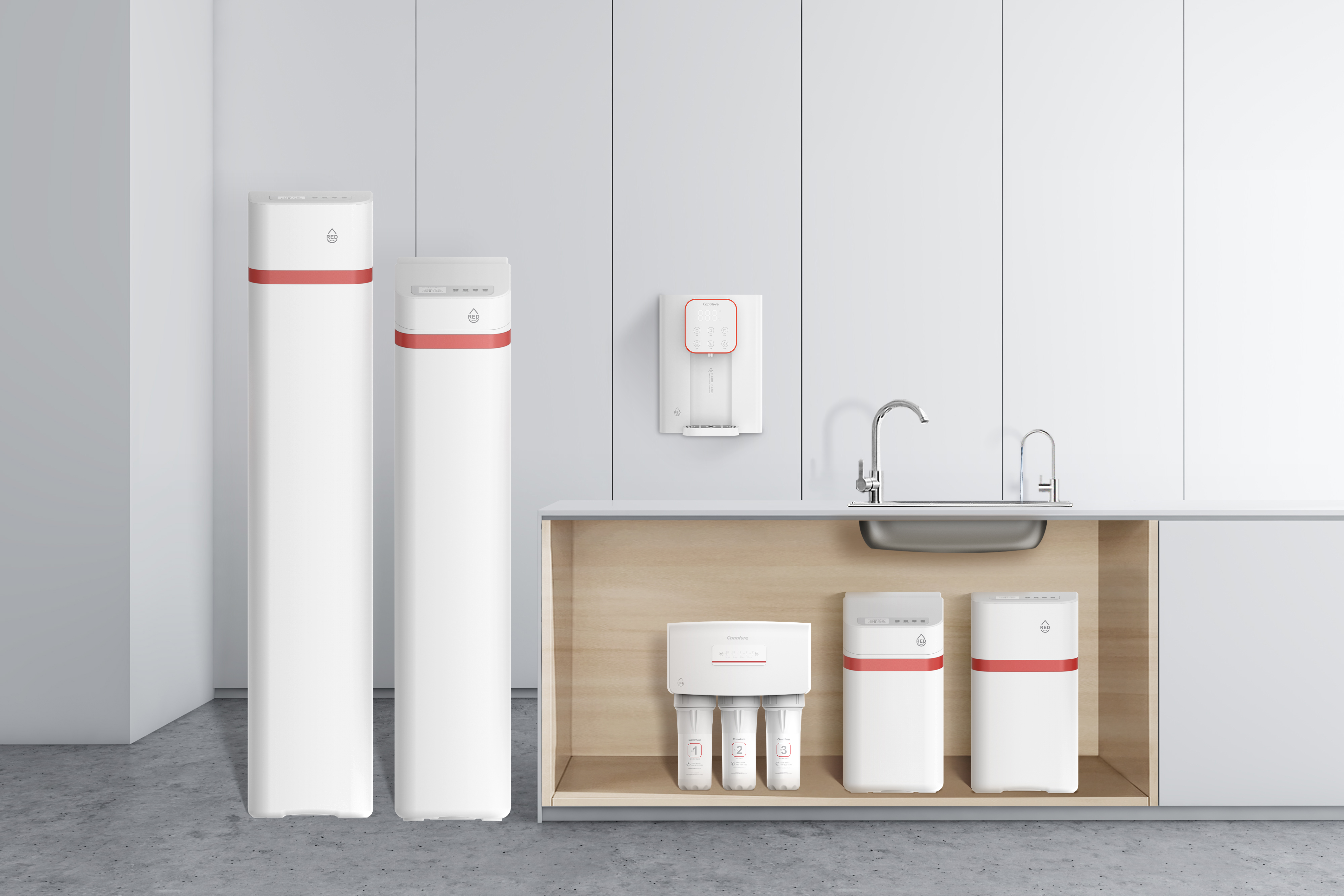 中国红作为一种具有深厚历史和文化底蕴的色彩,在中国传统文化中占据着举足轻重的地位。开能工业设计团队以中国元素为创意灵感,结合中国红、优雅弧线、品牌图腾等塑造具有国潮风格、时尚外形、格调高雅的全屋水处理系统。这不仅是对传统文化的传承与致敬,更展示了中国传统美学与现代科技相结合的独特魅力。