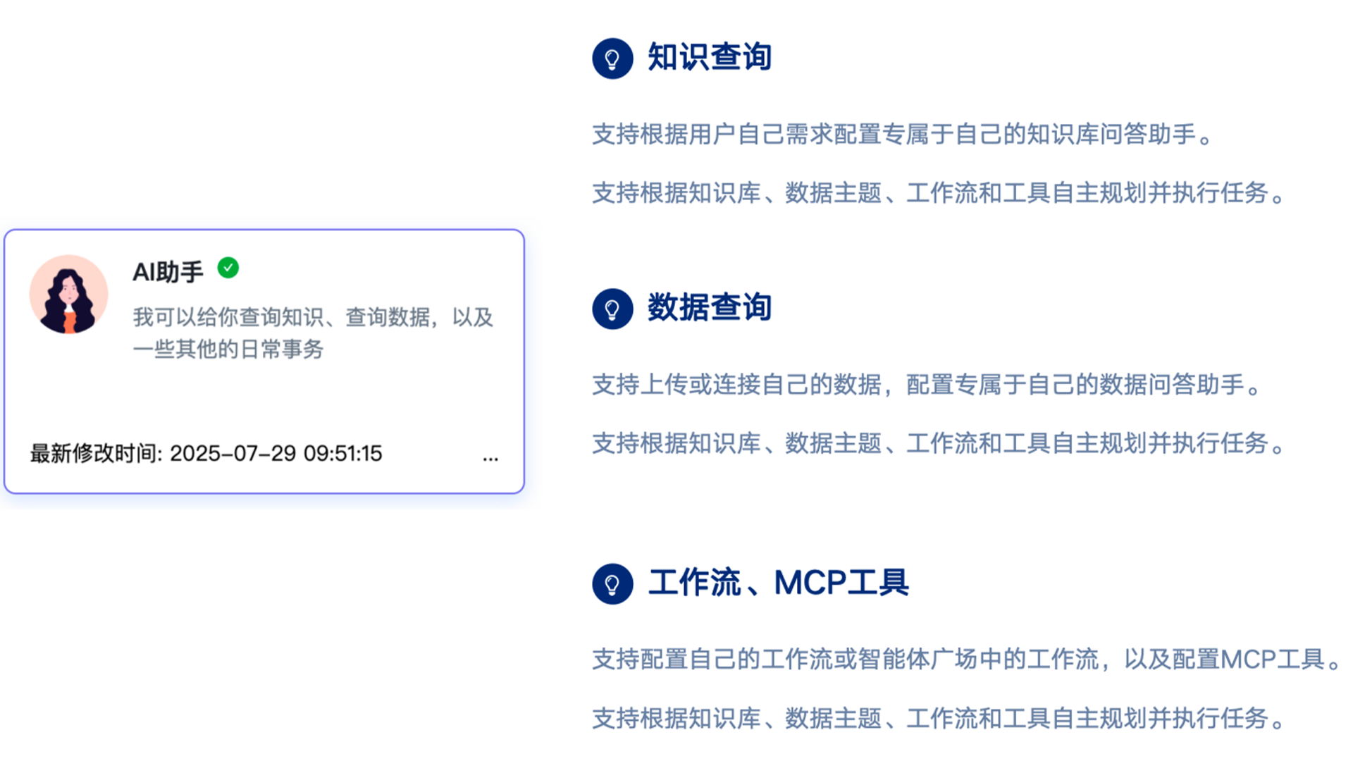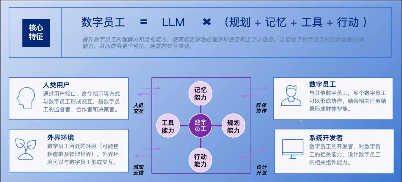 我们不仅要应对当前的挑战,更要为未来五年的数字化转型打下坚实基础。数字员工平台具备自主规划和定义Agent的能力,通过培训,普通员工可以掌握AI搭建的基础技能。在IT团队的支持下,AI能力将得以在各个部门广泛传播。此外,通过模块化的组合,不同的Agent能够相互协作,形成强大的整体协同效应。