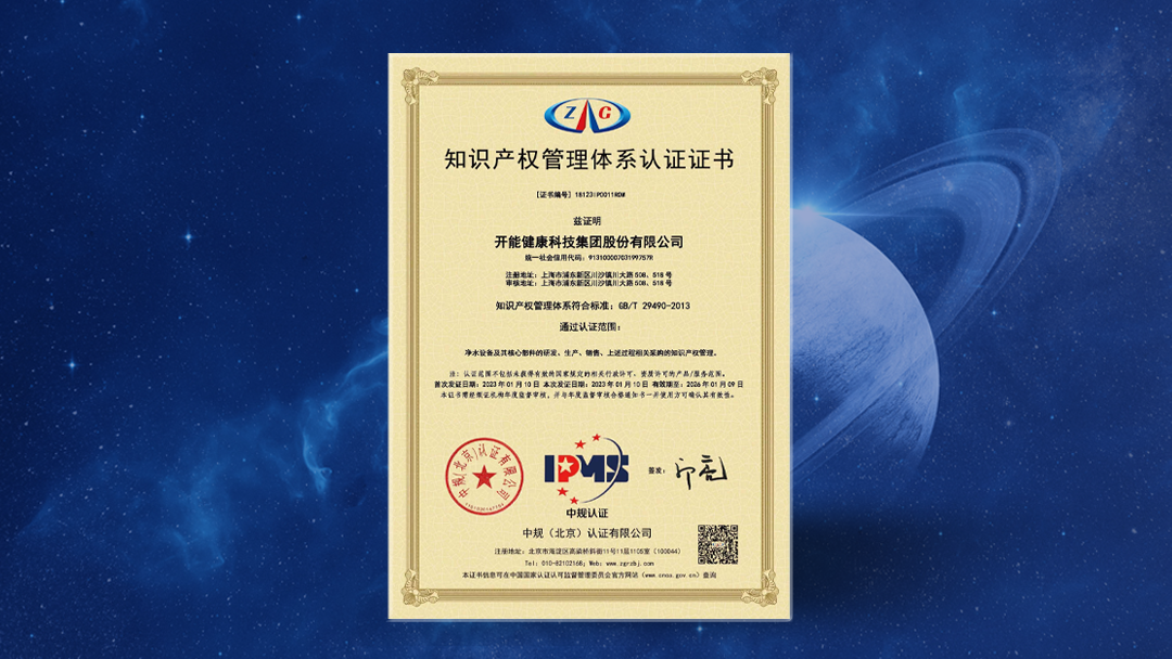 权威认证|开能集团荣获知识产权管理体系认证证书