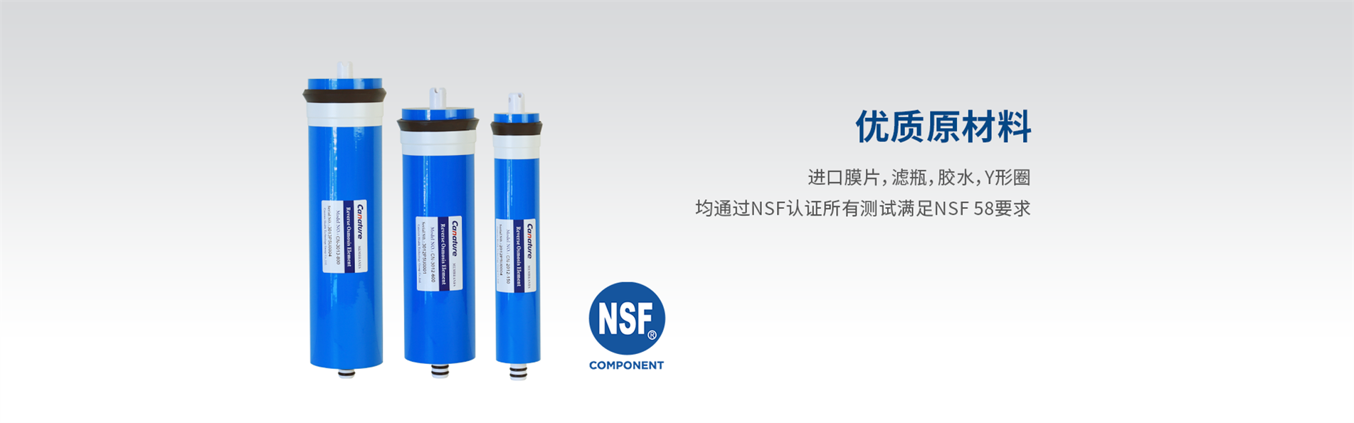 优质原材料,进口膜片,滤瓶,胶水,Y形圈均通过NSF认证