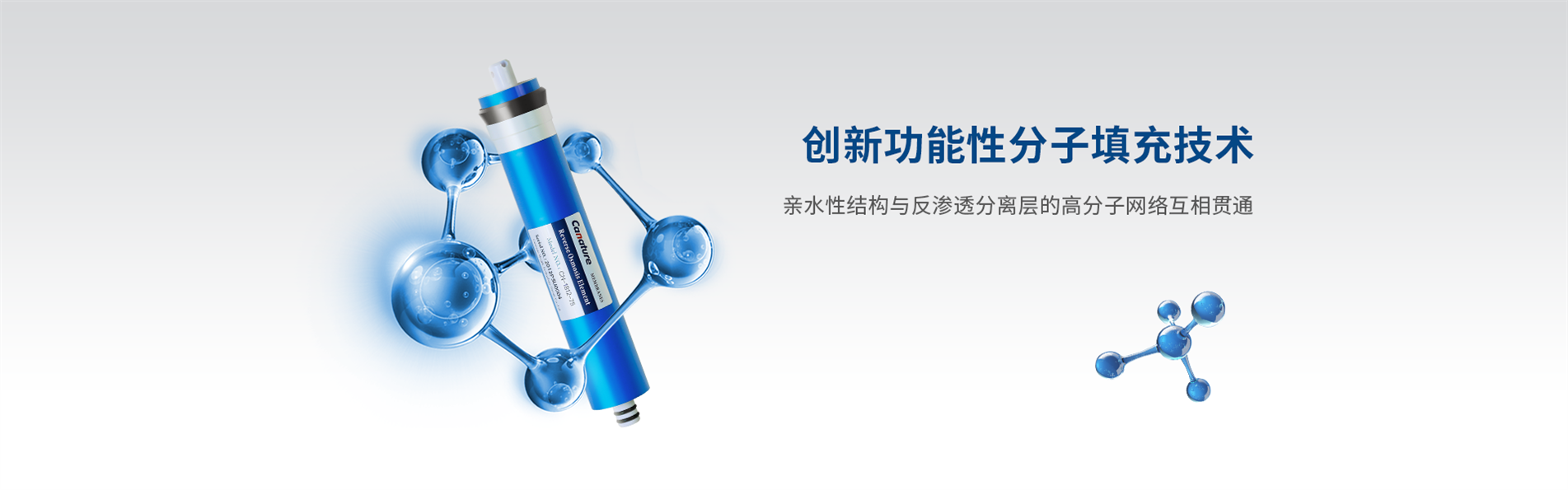 创新功能性分子填充技术,亲水性结构与反渗透分离层的高分子网络互相贯通
